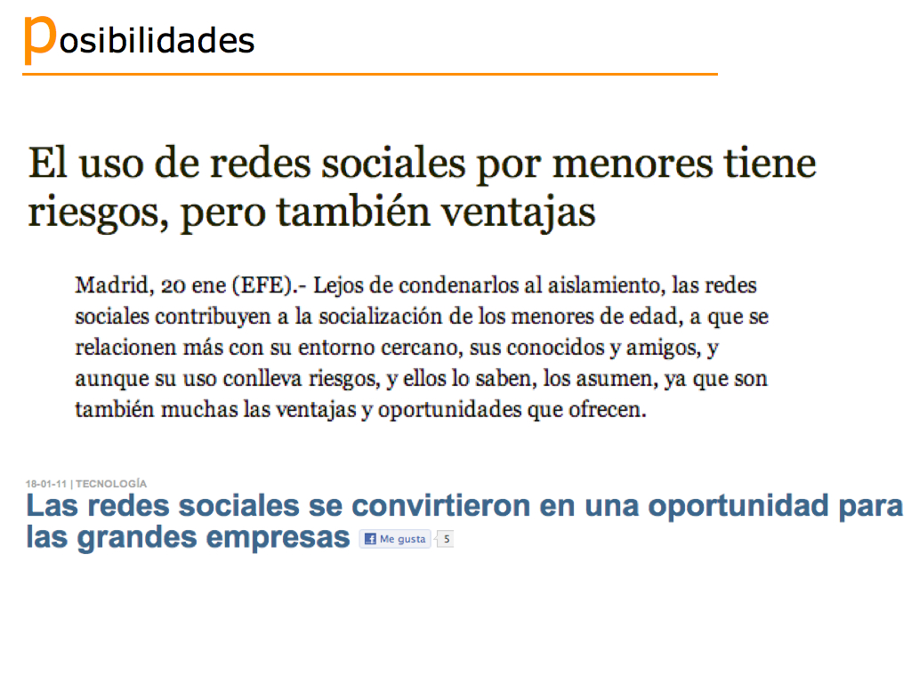 Siempre recuerdo cuando estudiando Pedagogía analizábamos los principios generales de medios del gran Cabero. Una tecnología no es buena ni mala por sí misma, somos las personas las que hacemos un uso bueno o malo de la misma. Se puede hacer un mal uso de las redes sociales pero también se puede hacer un uso positivo de las mismas. Agentes educativos y familias podríamos trabajar juntos para ayudar a los adolescentes a manejar esas tecnologías, o al menos intentarlo. Destaco del artículo mencionado la frase «hay que prohibir a un menor aquello que no es capaz de gestionar», antes de prohibirlo ¿no deberíamos intentar ayudarle a gestionarlo?» si el problema es que no sabe gestionarlo ofrezcamos recursos y esfuerzos para ayudar. ¿O es que se considera que se han hecho todos los esfuerzos sociales y educativos necesarios y la única solución que queda es pedir que se prohiba por ley?