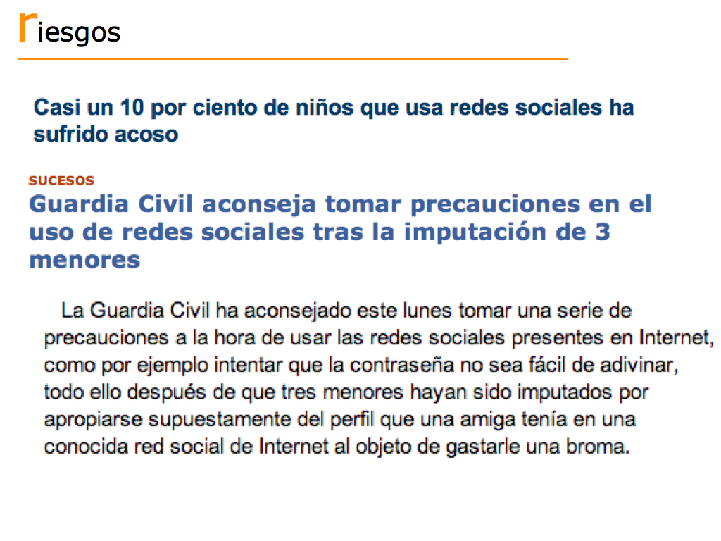 No obstante, también existen familias que se despreocupan totalmente de lo que hacen sus hijos en la vida (on)/(off)line y eso es muy peligroso, estamos hablando de menores, quizás no estaría tan mal considerar la posibilidad de que hubiera una aceptación explícita de los padres donde expresaran que son conscientes que sus hijos utilizan una determinada red social y que asumen el compromiso de educar a sus hijos en esta cuestión. ¿Pero qué pasa cuando los padres quieren ayudar a sus hijos pero no saben o simplemente se niegan al uso de las redes sociales por desconocimiento?, volvemos al tema de siempre, la formación de padres sería una cuestión imprescindible.